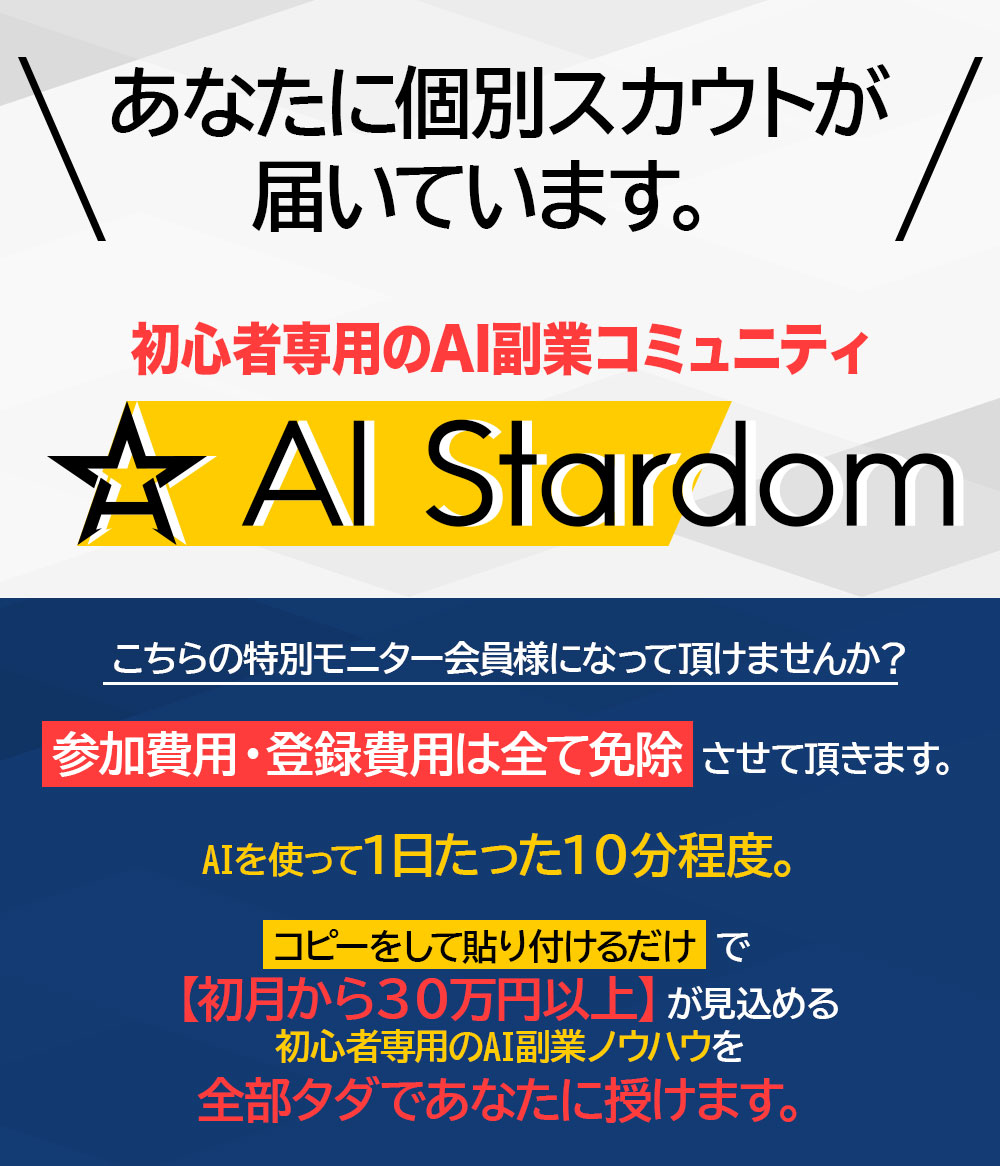 あなたもAI Stardomの一員となって、一撃30万円の収入を目指してみませんか?