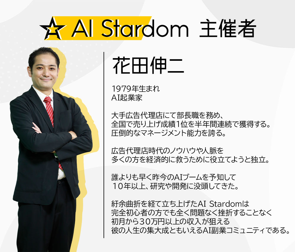 AI Stardomを主催している、花田伸二と申します。